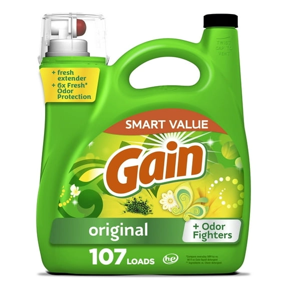 Gain Laundry Detergent Liquid with Odor Fighters, Original Scent, 154 fl oz, 107 Loads